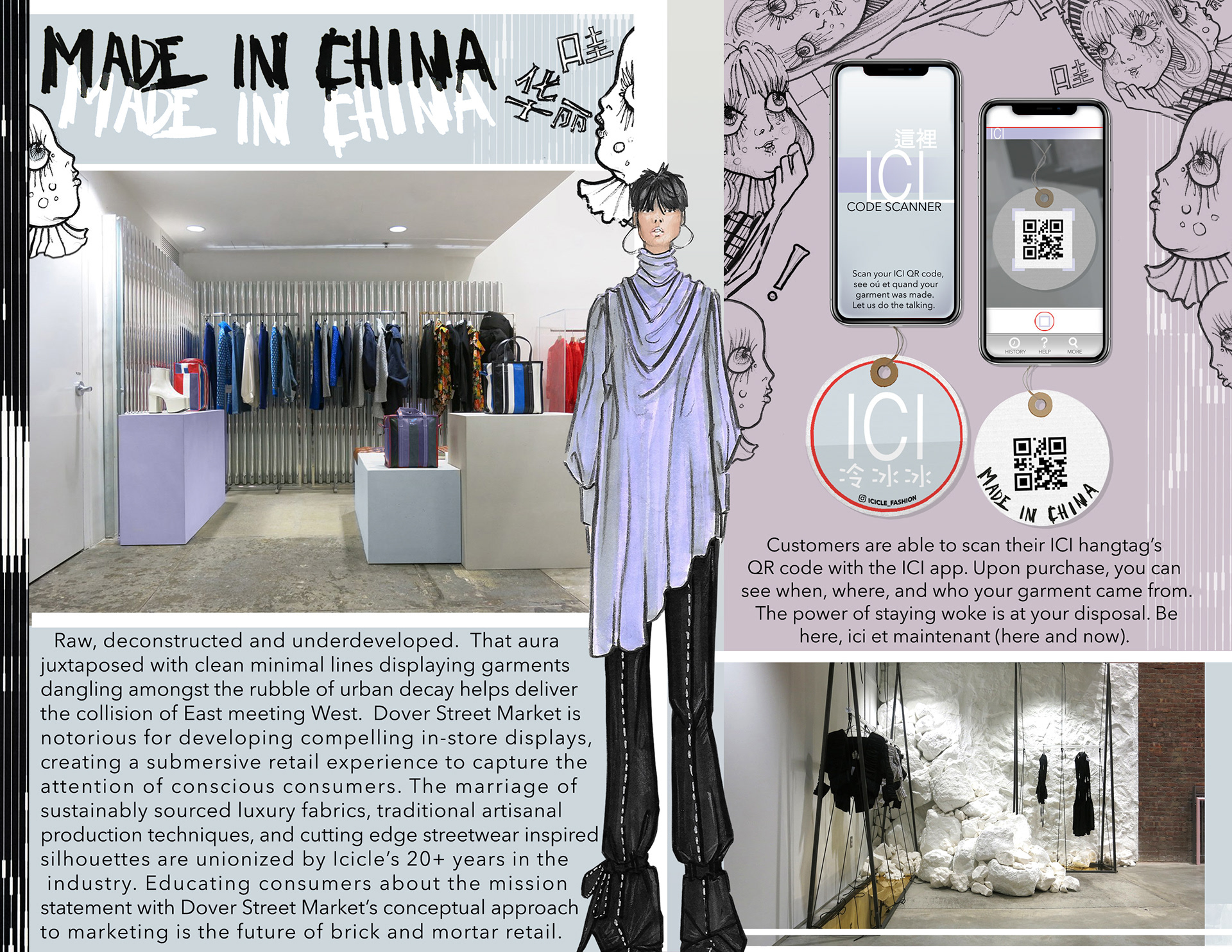 Ethical luxury, sustainable fashion capsule collection for a global collaboration. Exporting sustainable Shanghai based fashion brand, Icicle, to Dover Street Market in NYC.